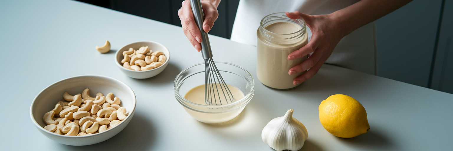 - Blend the Base: In a high-speed blender, combine your soaked cashews (or tofu), nutritional yeast, garlic, lemon juice, and the protein slurry. Blend on high until completely smooth and creamy.