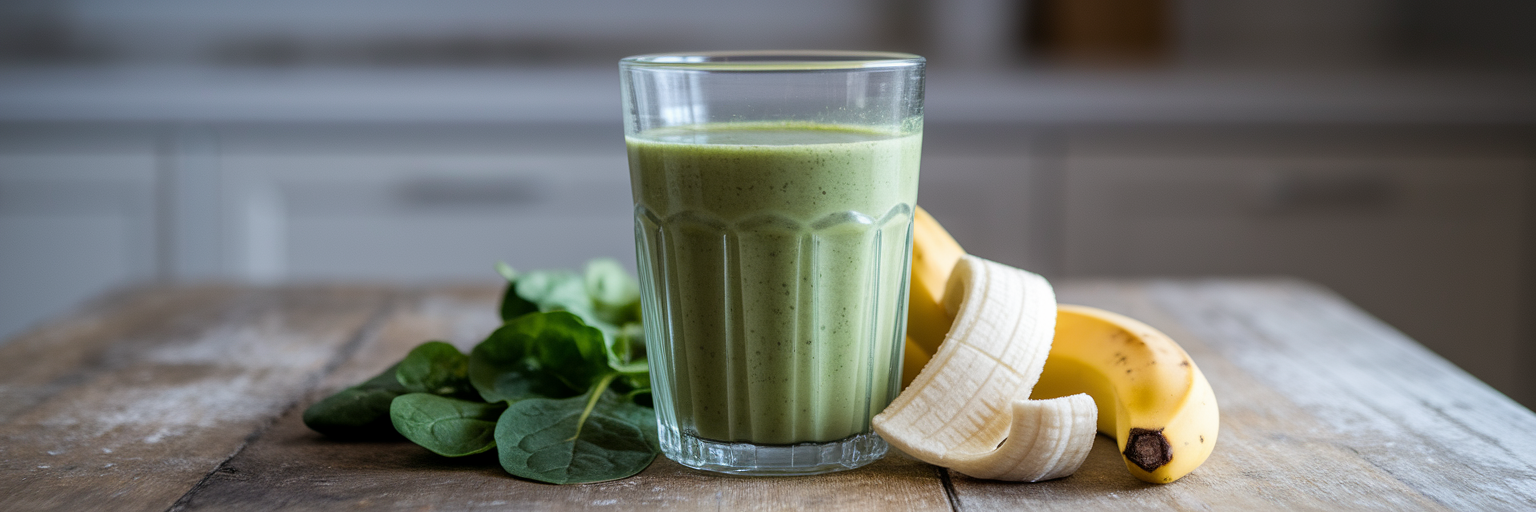 This smoothie is all about minimalism. The banana provides potassium for muscle function, while the spinach adds nutrients without affecting the taste.
