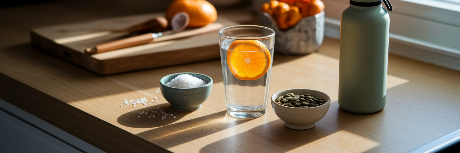 Aquí tienes algunos consejos sencillos de hidratación para senderistas : intenta beber de 473 a 900 ml de agua durante la primera hora después de terminar la caminata. Pero no se trata solo de agua. También necesitas reponer los electrolitos como el sodio, el potasio y el magnesio que perdiste a través del sudor. Estos minerales son esenciales para el correcto funcionamiento muscular y el equilibrio hídrico. Como destaca Trail.recipes , reponer líquidos y electrolitos rápidamente es un primer paso fundamental en la recuperación post-excursión. En lugar de recurrir a una bebida deportiva azucarada, prueba una sencilla mezcla casera de electrolitos: simplemente añade una pizca de sal marina y un chorrito de zumo de limón o lima a tu botella de agua.