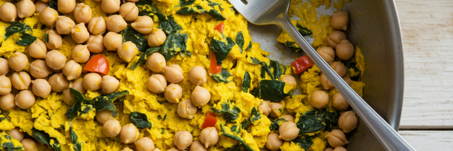 Para aumentar su valor nutricional, añade un puñado de espinacas y pimientos morrones picados. La vitamina C de los pimientos ayuda a absorber mejor el hierro de los garbanzos y las espinacas. Este plato también es una fantástica opción para alérgenos, ya que no contiene gluten y se puede preparar sin soja, lo que lo convierte en un excelente desayuno vegano pre-entrenamiento para casi cualquier persona.