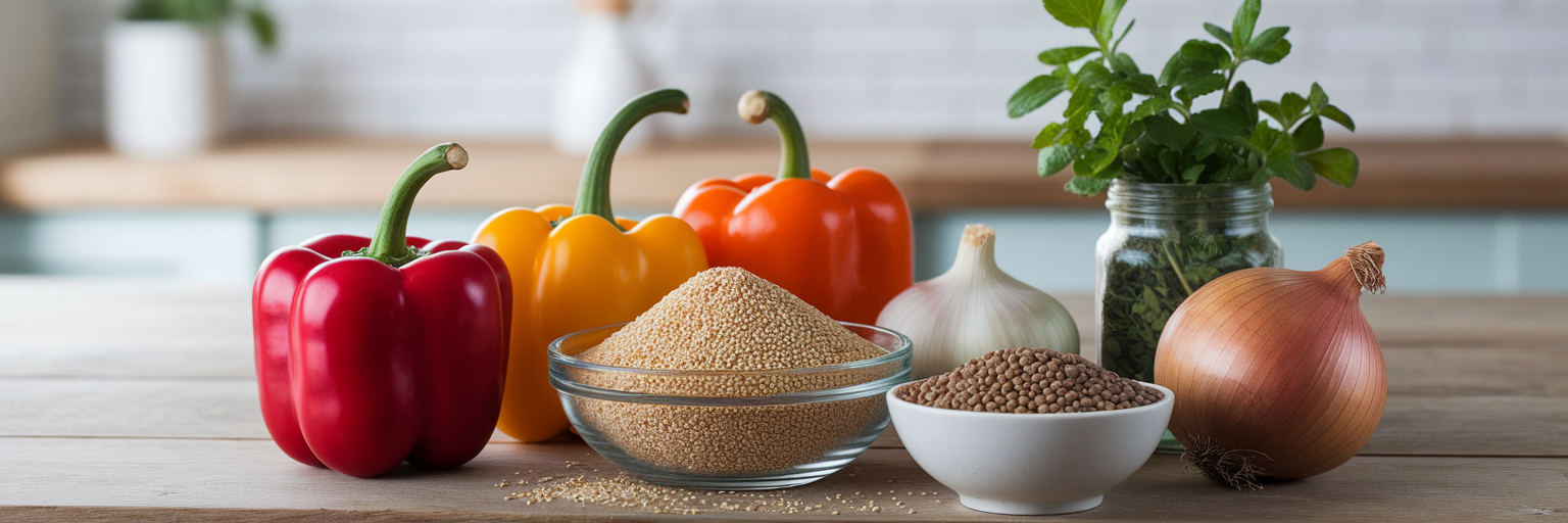 El secreto para un pimiento relleno realmente delicioso es empezar con ingredientes de primera calidad. Cada componente contribuye al sabor, la textura y el valor nutricional. Aquí tienes lo que necesitas para crear el relleno perfecto.