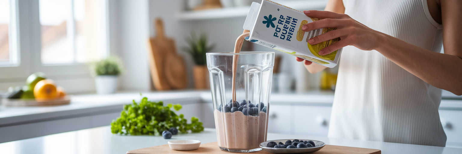 - Batido Rápido: Este es el método más rápido y sencillo. Simplemente mezcla una cucharada de proteína en polvo con agua o tu leche vegetal favorita en un mezclador. Para un aporte extra de nutrientes y fibra, añade un puñado de espinacas o frutos rojos.