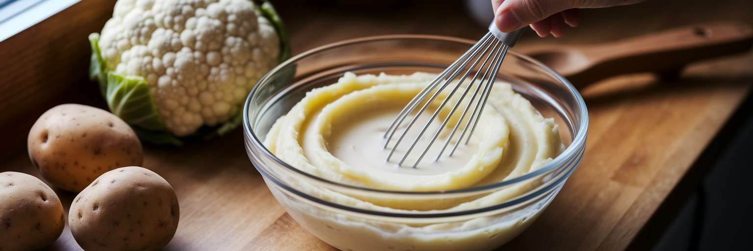 Una vez que las papas y la coliflor estén hervidas y listas para machacar, vierta lentamente la leche con proteína mientras machaca hasta obtener la consistencia deseada. Para realzar la textura y el sabor, considere agregar una cucharada de levadura nutricional para un sutil toque a queso y un toque de mantequilla vegana o aceite de oliva para una textura más cremosa. Si busca los mejores resultados en la cocina y la repostería, comprender qué hace que una proteína en polvo sea la mejor puede marcar la diferencia.