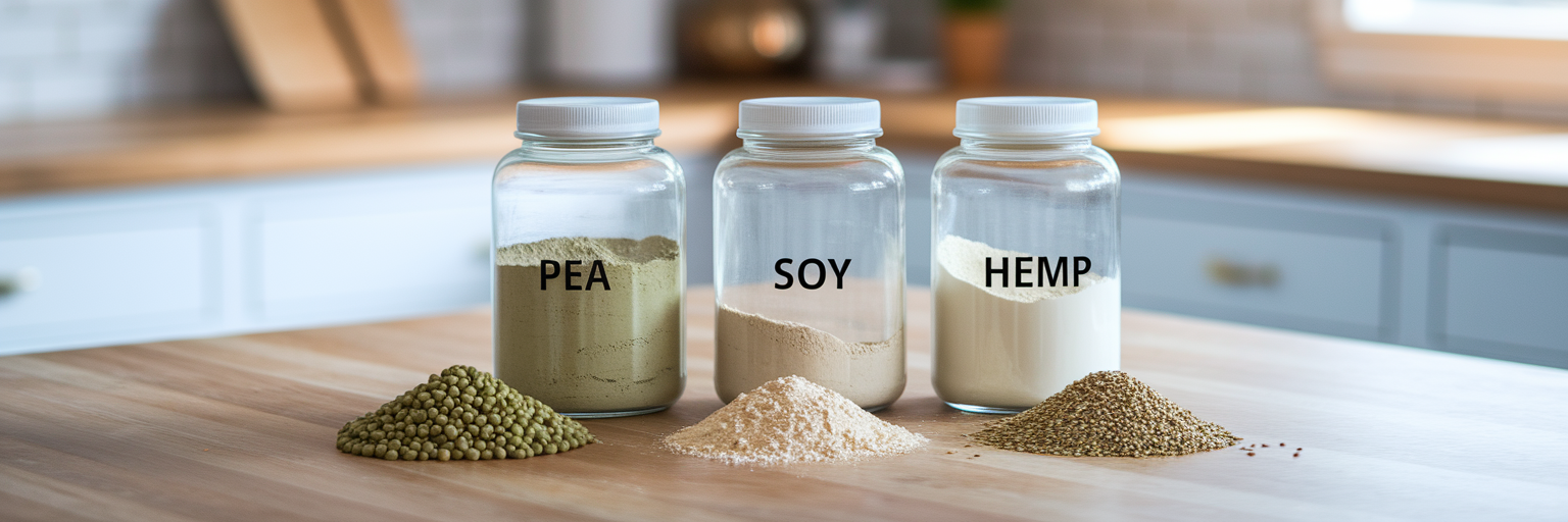 Antes de empezar a cocinar, es importante elegir el polvo adecuado. No todas las proteínas veganas sin sabor son iguales, y sus sutiles diferencias pueden afectar a tu plato final. Los tipos más comunes que encontrarás en los EE. UU. son los de guisante, soja, arroz y cáñamo, cada uno con su propia personalidad.