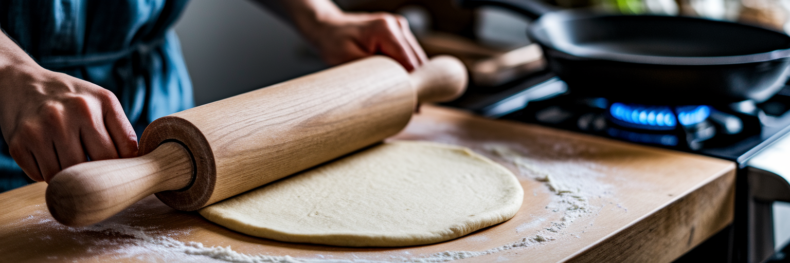 - Dividir y cocinar: Dividir la masa en 12 porciones iguales y extender cada una formando un círculo delgado. Cocinar en una sartén precalentada y seca a fuego medio-alto durante unos 30-45 segundos por lado, hasta que esté ligeramente dorada e inflada.