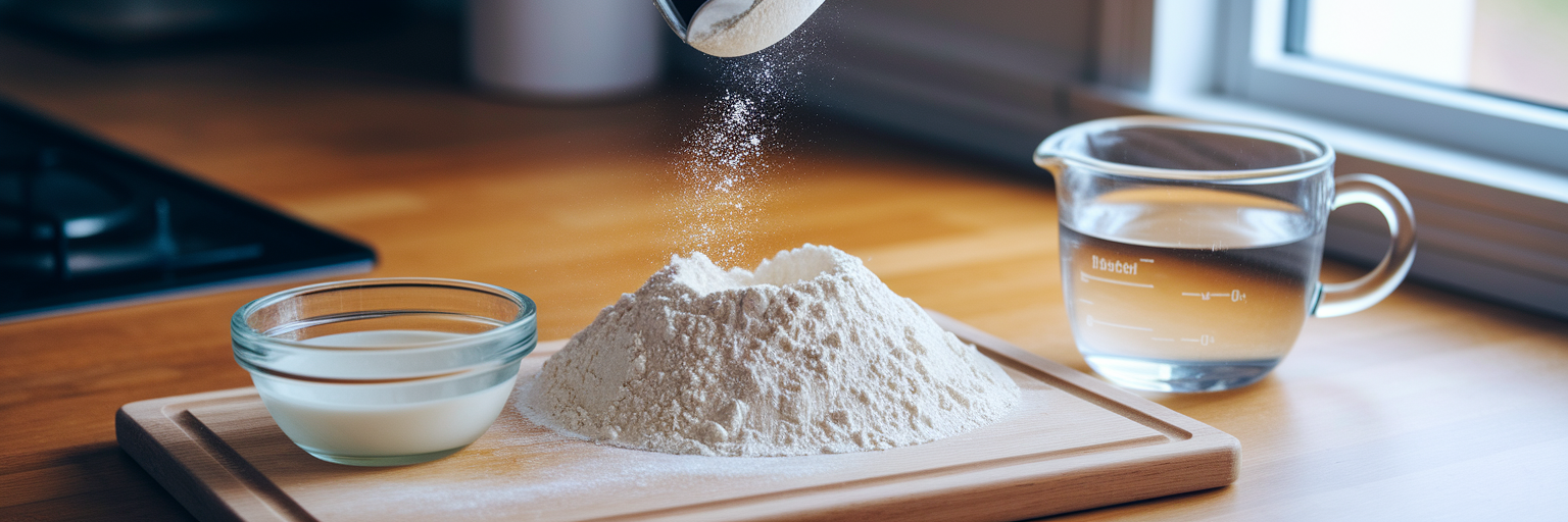 | Agua tibia | 1 taza | Hidrata la harina y la proteína, uniendo todos los ingredientes para formar la masa. |