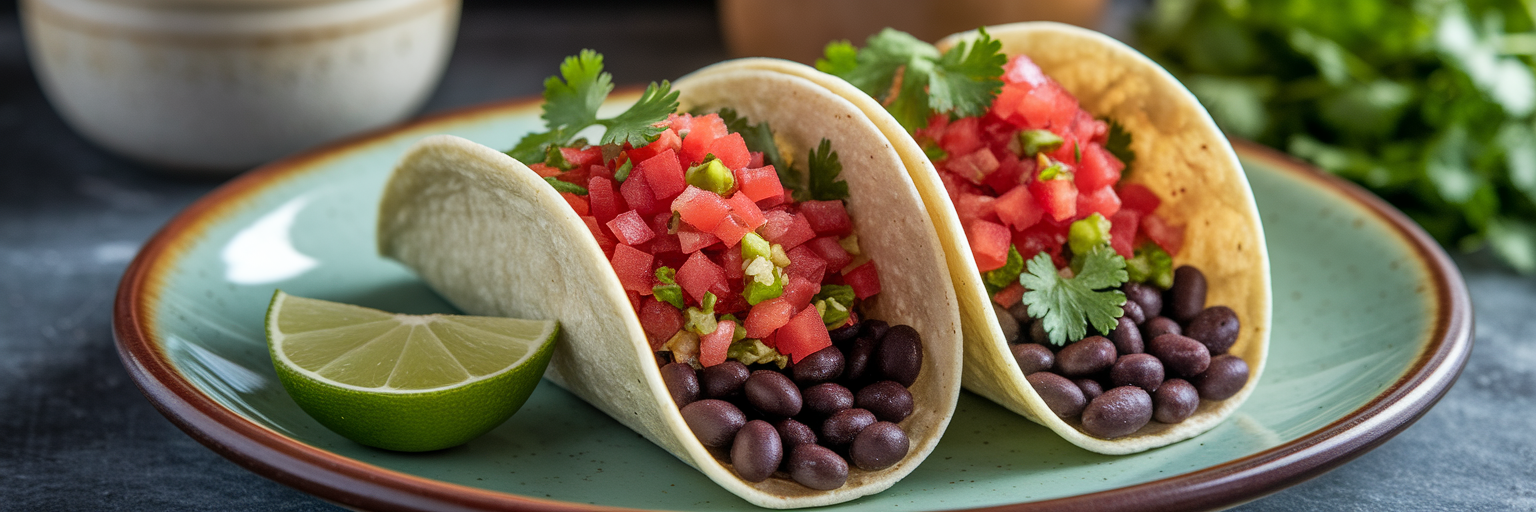 Vaya más allá de los frijoles comunes. Pruebe a rellenar sus tortillas con carnitas de yaca rallada y picante, tempeh desmenuzado sazonado con chile y comino, o camotes asados con frijoles negros y una crema de lima.
