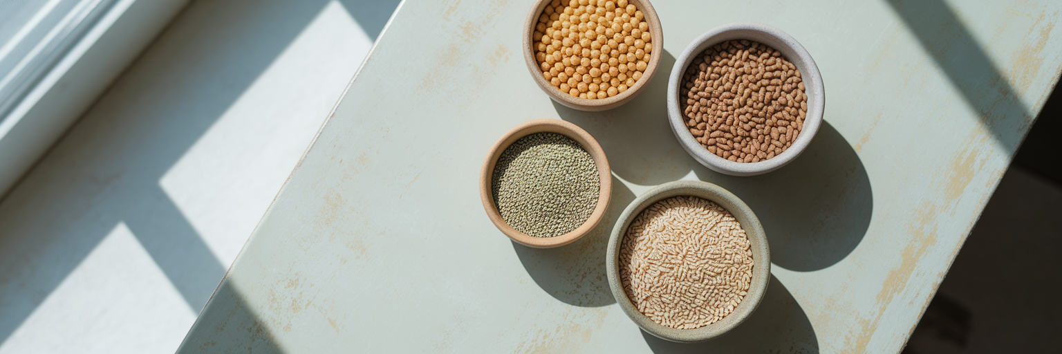 - Proteína de arroz integral: El complemento perfecto para la proteína de guisante. Su alto contenido en metionina y cisteína, aminoácidos esenciales, compensa las deficiencias de la proteína de guisante.