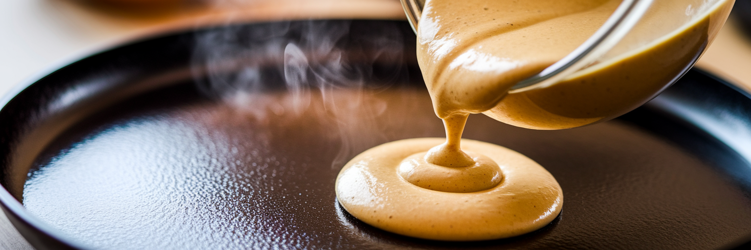 4. Calienta una sartén o plancha antiadherente a fuego medio. Engrásala ligeramente con un poco de aceite o mantequilla vegana.